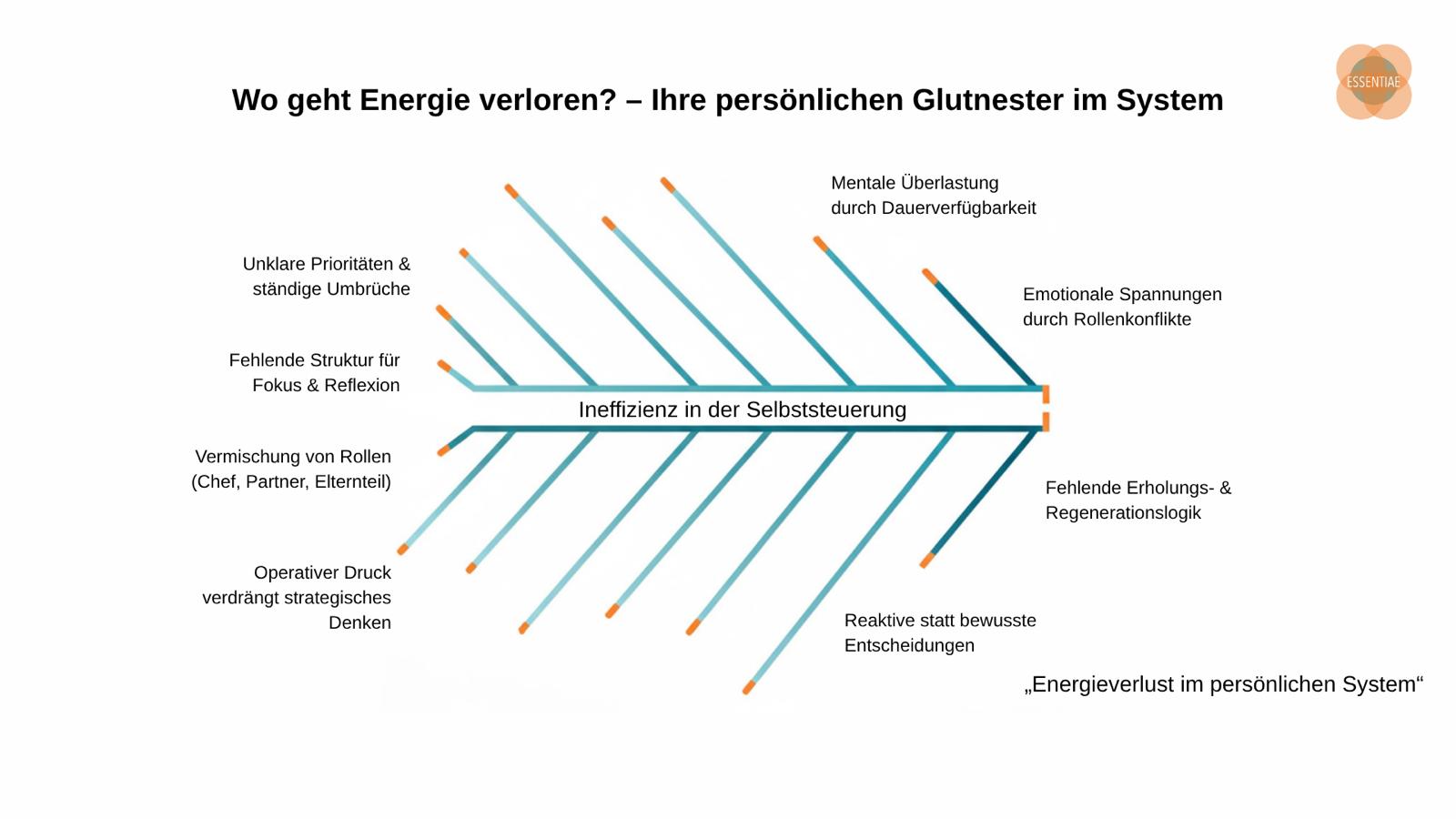 Gemeinsam analysieren wir, wo in diesem System Ihre persönlichen Glutnester liegen – jene verdeckten Spannungsfelder, in denen Energie, Konzentration oder Entscheidungsfähigkeit verloren gehen.