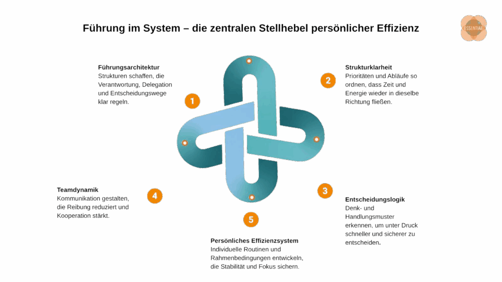 Mit ESSENTIAE gewinnen Sie Steuerung, Struktur und Klarheit zurück – für Entscheidungen mit Weitblick, Kommunikation mit Wirkung und Energie, die langfristig trägt.